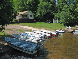 The well maintained grounds around the cabins are the perfect place for horseshoes, tether ball, hoops, volleyball, sitting on the swing set or just relaxing with your favorite book of magazine. Sit around the large fire pit and visit or roast hot dogs or marshmallows. We provide the wood for wonderful campfires by the lake.